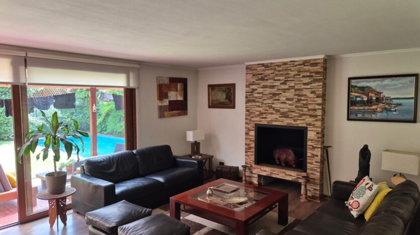 Living comedor con salida a terraza, chimenea empotrada.