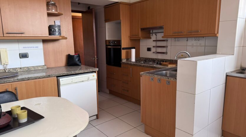 Cocina con logia integrada y comedor de diario