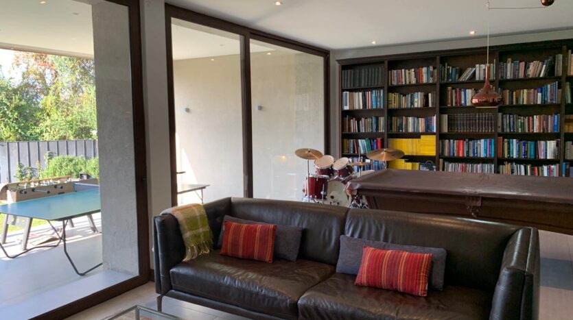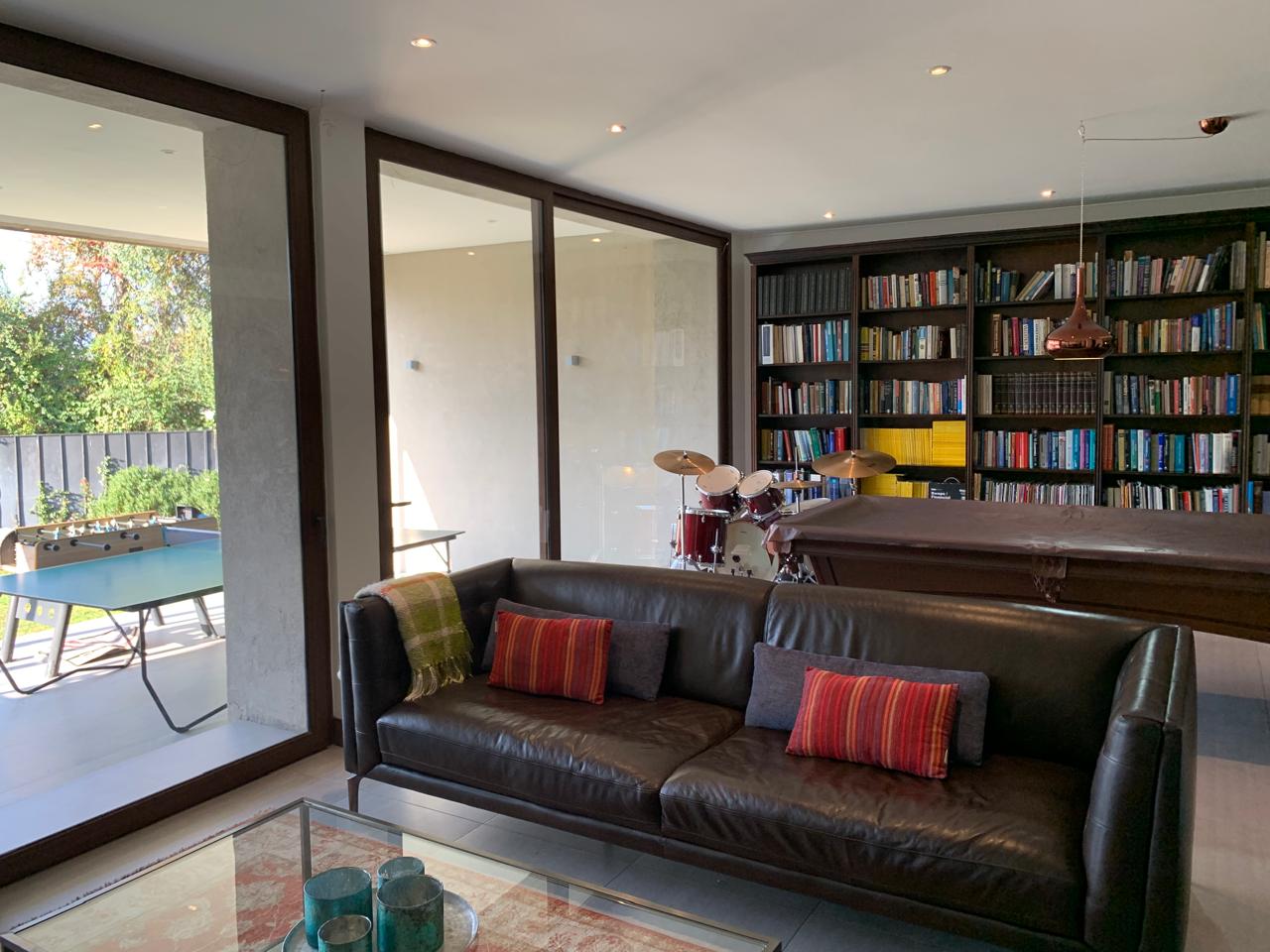 Living con salida a amplia terraza y gran jardín